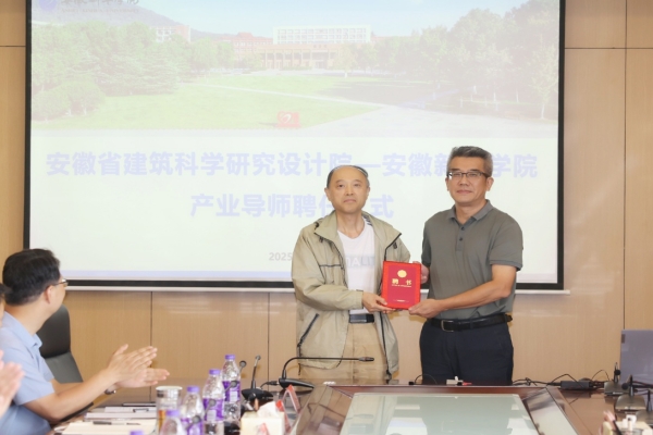 协议签署后,beat365在线体育官网登录入口城市建设学院院长沈小璞教授为安徽省建筑科学研究设计院等专家颁发产业导师聘书。