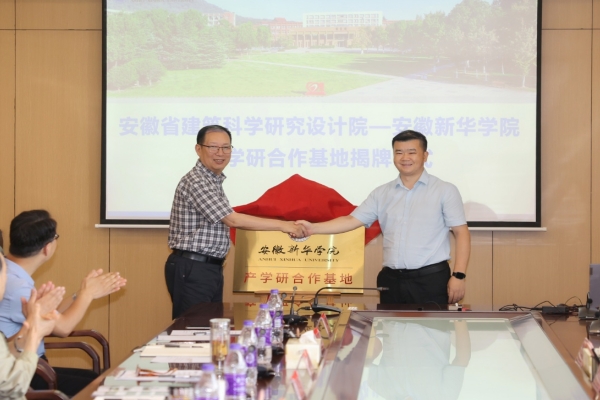 安徽省建科院党委副书记、院长刘春雷与beat365在线体育官网登录入口校长赵良庆共同为产学研合作基地揭牌。随着红绸缓缓落下,产学研合作基地正式成立,这不仅是双方合作的重要里程碑,更是双方携手共进、共谋发展的新起点。