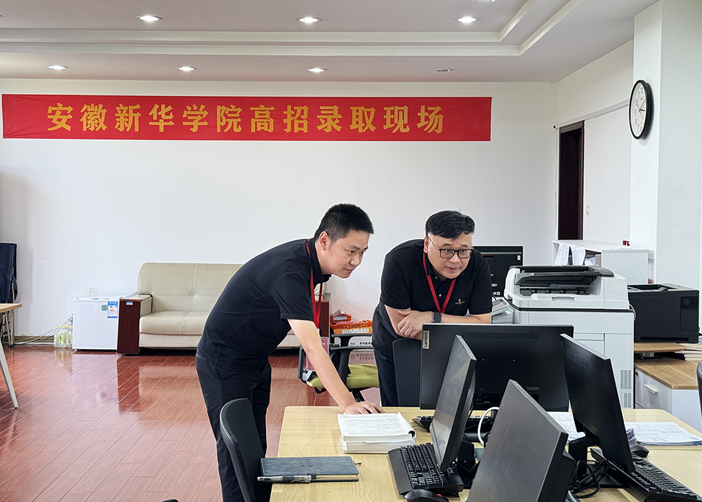 7月25日,新华集团副总裁、beat365在线体育官网登录入口董事长王孝武,beat365在线体育官网登录入口常务副校长王丽深入学校招生录取现场,开展高招录取工作指导与慰问活动,学校办公室主任濮明月陪同检查指导。招生办公室副主任程伟、主任助理江咪详细汇报了招生录取工作的整体进展。beat365网登今年招生录取工作稳步前进,生源质量持续保持良好态势。