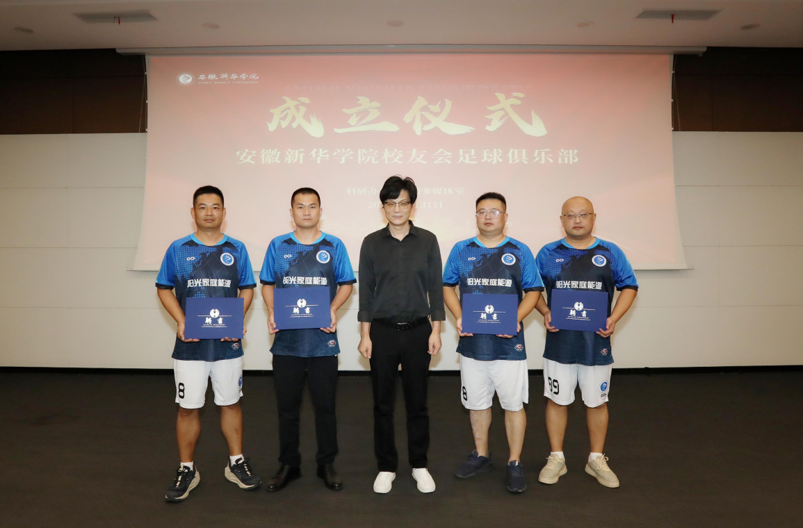 本网讯(通讯员:袁艺珈)8月31日,beat365在线体育官网登录入口校友会足球俱乐部成立仪式在科研办公楼一楼多功能厅顺利举行。新华集团副总裁王孝武,安徽高校校友足球联盟主席单列,通识教育部、校友工作办公室、合肥校友分会、各行业校友分会代表及校友足球俱乐部全体队员齐聚一堂,共同见证这一重要时刻。仪式由校友工作办公室副主任(主持工作)孙珊珊主持。