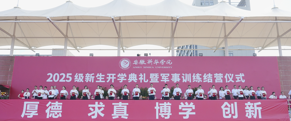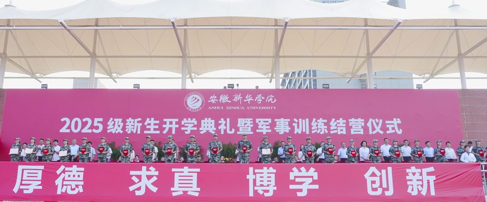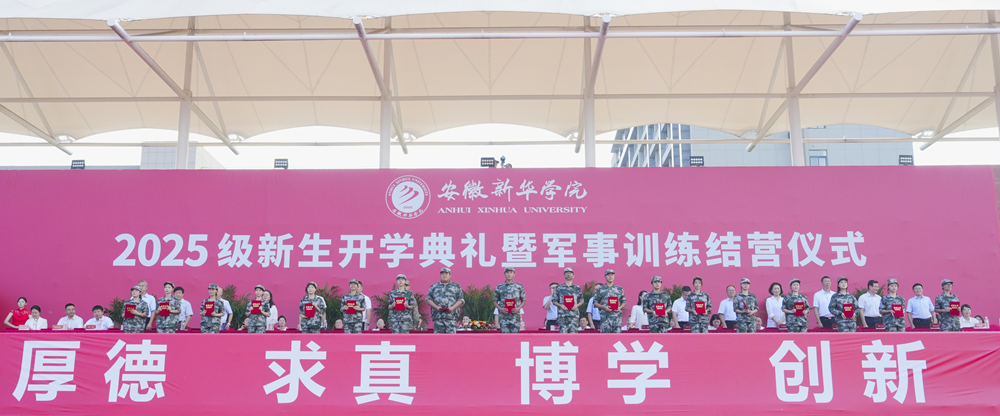 本网讯(通讯员:刘晓蓉)9月16日上午,beat365在线体育官网登录入口2025级新生开学典礼暨军事训练结营仪式在祥云体育场举行。新华集团董事长吴俊保,beat365在线体育官网登录入口董事长、党委副书记王孝武,省督导专员、校党委书记邸建伟,校长赵良庆,常务副校长王丽,副校长陈义盛、贺行佳、李军、盛晓青,合肥市蜀山区人武部部长唐泊,各二级学院、职能处室负责人出席本次典礼。大会由副校长王琦进主持。