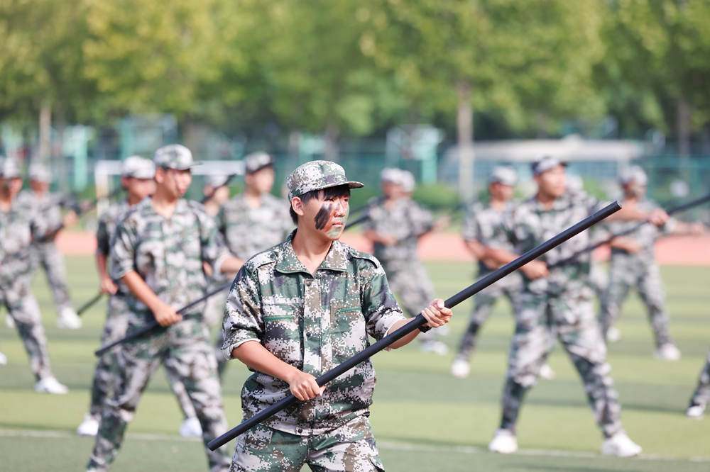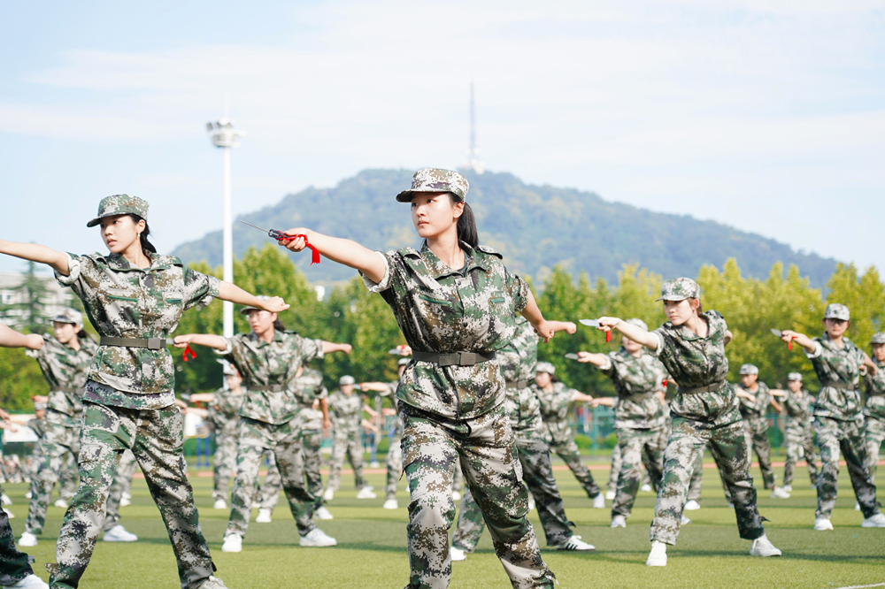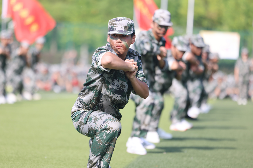 展示环节,《龙腾新华》破空而出,气势恢宏;《匕首操》动作凌厉、锋芒逼人;《擒敌拳》拳招连环,尽显骁勇之姿;《军体拳》拳势如山,意志如钢;《应急棍》挥洒如电,棍影纵横;《华舞飞扬》节奏统一、形意相合,将青春的热望与追梦的坚定融为绚烂画卷。