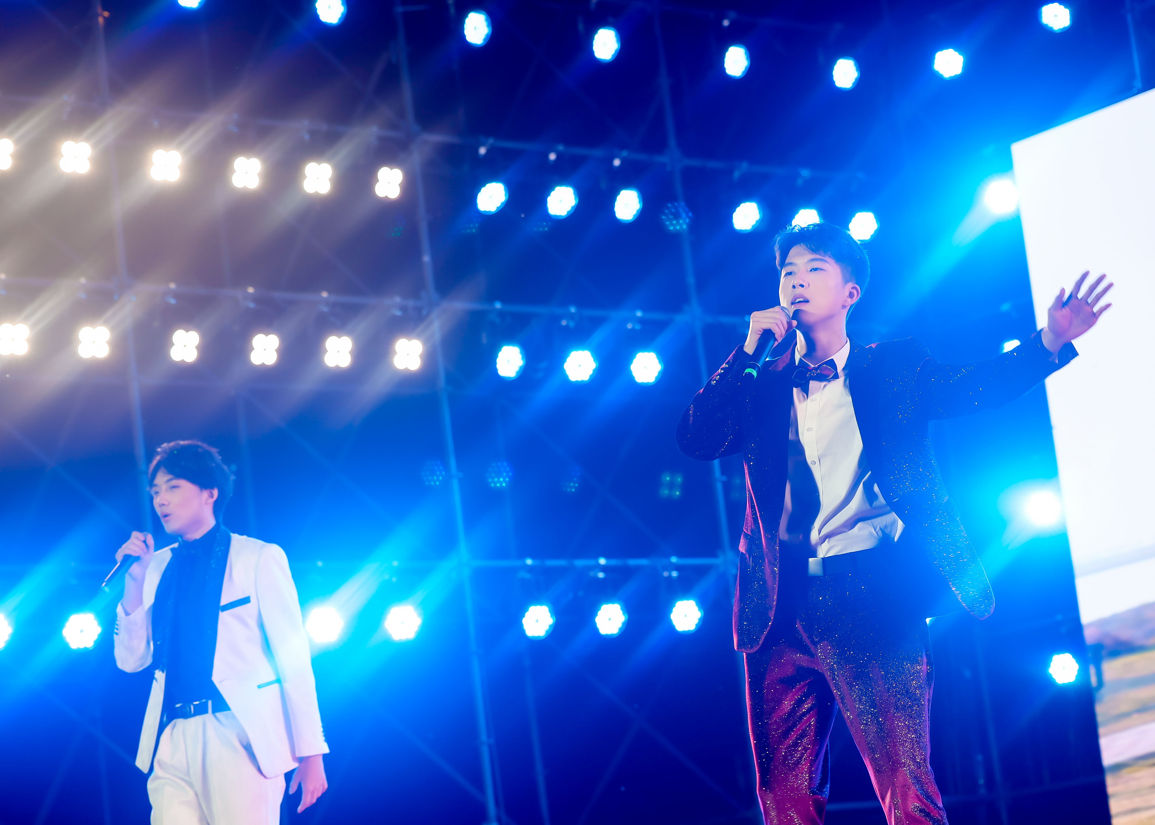 音乐学院博士教师团队王昊星、任德威、宋文玉带来歌曲串烧《我的太阳》,歌声恢弘,技艺精湛,令人徜徉在维也纳的金色大厅,又驰骋于辽阔的青青草原,这趟音乐之旅实在让人酣畅淋漓,赢得阵阵掌声。青年博士教师李尚锋随后登场,一曲《一路向北》展现了学院音乐教学的多元风格与扎实功底。
