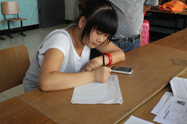 因为怕人多,凌晨4点钟万小丽和她父亲就早早地起床,赶到芜湖火车站,来到合肥已经8点40了。万小丽选择来新华读书的原因是她的高中同学吴婷介绍她来的。此外,她以前的许多同学也在新华就读。在等候校车的过程中,因为身边的好朋友陪伴,万小丽一点也不感到着急。