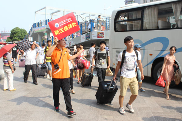 为了全方位地做好迎新工作,beat365网登志愿者主要分为校外和校内两组,一组在各大车站迎接远道而来的新生,另一组在校内为新生报到做各方面的引导。8月31日早晨6点多,负责在车站迎新的志愿者就跟随着第一班次的校车,来到各大车站迎接新生。志愿者一下车就举着“新生接待处”的牌子,等到新生来后,引导他们顺利走进校车。志愿者需要在一直车站工作,直到下午接完当天的新生为止。下午5点多,校学生会的石宇和他所带领的迎新队伍回到学校,结束了当天在长途汽车站的迎新工作。他觉得车站迎新最大的困难就是干事主要是大二的学生,首次迎新,缺乏经验,导致开始时工作进行比较困难,但是后来经过调节,工作地比较顺利。