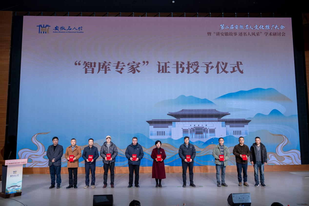 会上,安徽省文化和旅游厅博物馆与社会文物处副处长李玮、渡江战役纪念馆(安徽名人馆)管理处党支部书记、处长杨圣兵先后致辞。会议隆重举行了“讲安徽故事 述名人风采”征文比赛颁奖、渡江战役纪念馆(安徽名人馆)新聘智库专家以及“博物馆之友”聘书颁发仪式。