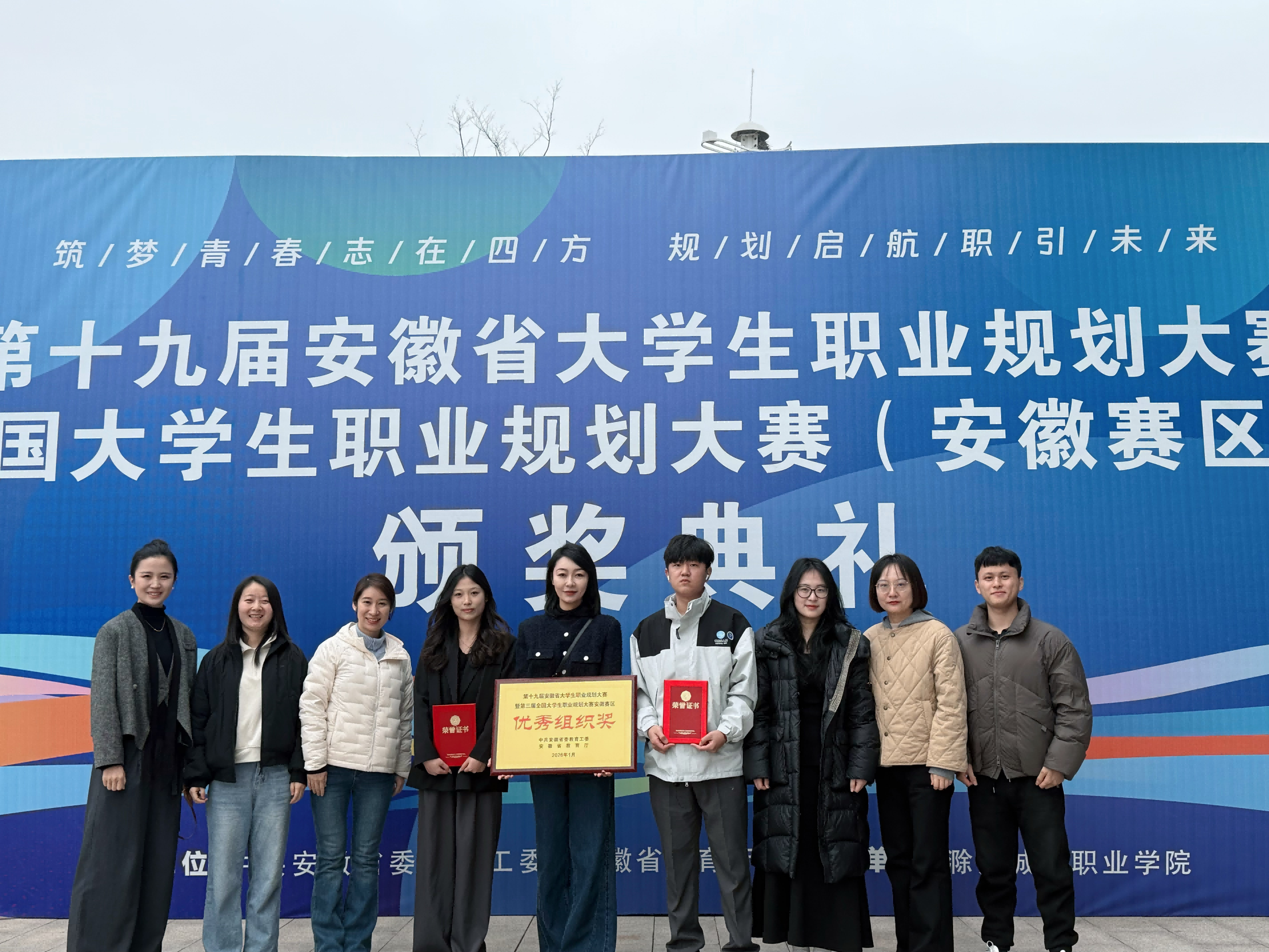 本网讯(通讯员:刘晓蓉) 近日,在第十九届安徽省大学生职业规划大赛暨第三届全国大学生职业规划大赛(安徽赛区)省级决赛中,beat365网登从光宏、祝溢璘、徐颍三位同学凭借清晰的职业规划、出色的现场展示和扎实的综合素养,在众多高校学子中脱颖而出,斩获金奖2项、银奖1项,铜奖3项,学校获优秀组织奖,为beat365网登历年来在该赛事中的最好成绩。