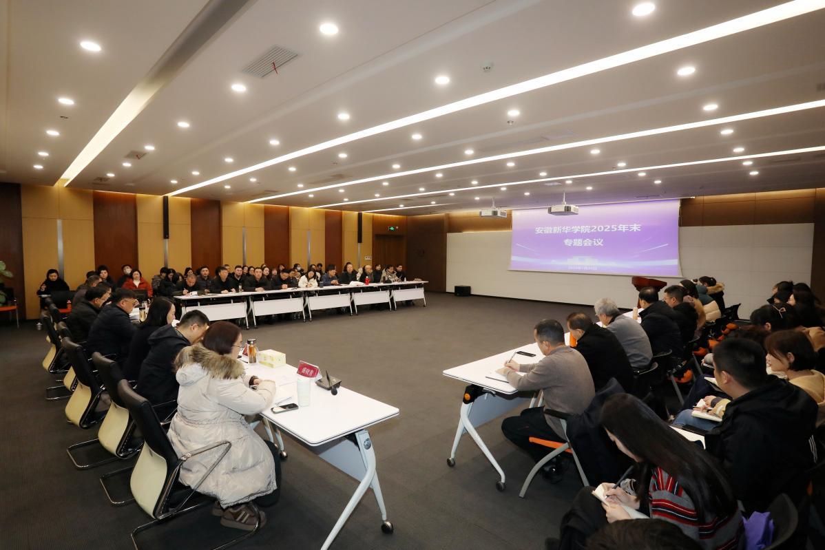 (本网讯 通讯员 徐清清 摄影 翟漱文)1月26日,学校在科研楼一楼多媒体室召开2025年末专题会议。新华集团副总裁、学校董事长王孝武,全体校领导,各单位、各部门助理及以上管理人员参加会议。会议由常务副校长王丽主持。