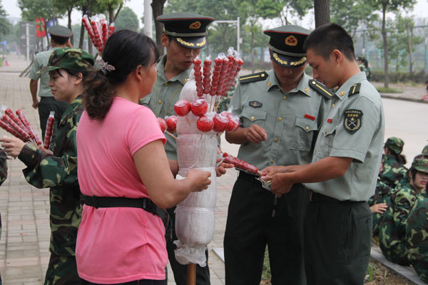 商学院二营一连的李教官和其他教官在同学们休息的时候,在一位卖糖葫芦的小贩那里买光了所有的糖葫芦,但是李教官因为去迟了,结果无功而返。