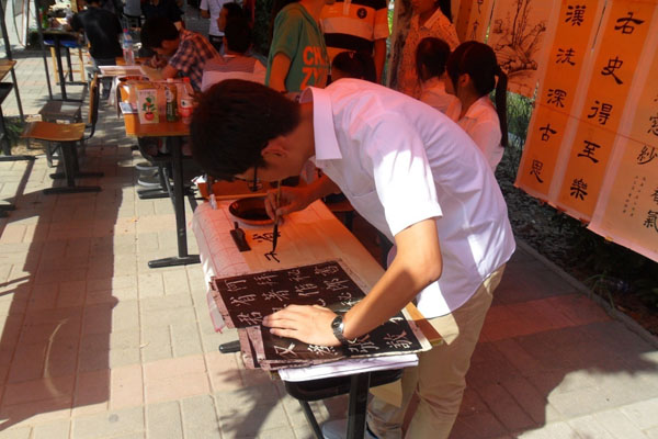招新期间,倪征走进各学生社团招新报名点,与社团学生干部亲切交谈,详细了解社团招新的进展情况,认真听取他们对社团工作的构思,并鼓励各社团积极打造特色品牌活动,认真、务实的将社团发展下去。在书画协会招新现场,倪征还即兴为该协会题写协会名,博得了同学们的掌声和喝彩。