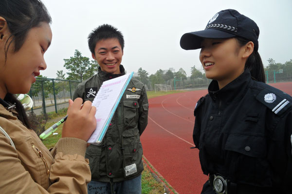 护校队队长周阳阳说,为做好此次运动会的护校工作,护校队分成了两组,一组在体育场进行现场秩序维持工作,一组在体育场外的校园各处巡逻,以防意外事件的发生。“不管是运动会还是其他活动,安全都是第一位的,所以我们护校队时刻都在准备着。”