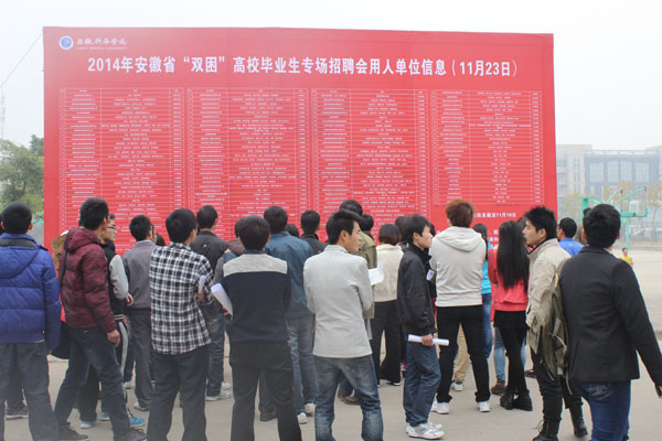 本网讯(通讯员 祝俭,学生记者 康引兰、邱慧雯,摄影:张倩、董振康)11月23日上午,2014年安徽省“双困”高校毕业生专场招聘会在beat365网登成功举办。安徽省投资集团、安徽农垦集团、皖北煤电集团、安徽博一流体传动、安徽一建、二建、省民航机场集团、徽商期货、科大管理学院、中原地产、百胜集团、正大集团、国美电器等众多省内外知名企业200余家来beat365网登招聘,共提供了4000余个工作岗位。