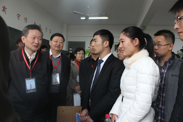 此次招聘会由安徽省教育厅、国家开发银行安徽省分行、安徽省人力资源和社会保障厅、安徽省国有资产监督管理委员会联合举办,旨在深刻贯彻党的群众路线教育实践活动和党中央“推动实现更高质量的就业,做好以高校毕业生为重点的青年就业工作”、“做好困难学生资助工作”的精神,积极推动“双困高校毕业生就业工作”,为广大家庭经济困难高校毕业生搭建就业平台。招聘会受到上级主管部门的高度重视,安徽省委教育工委副书记江春、国家开发银行安徽省分行副行长傅绪琏、安徽省人力资源和社会保障厅副厅长刘少华、国家开发银行总行评审三局助学贷款二处副处长胡勇在安徽省大中专毕业生就业指导中心主任鲍勇、安徽省学生资助管理中心主任李炳银、国家开发银行安徽省分行客户二处处长洪为、安徽省人才服务中心副主任吴传华、安徽省国有资产监督管理委员会企业分配处副处长凌萍等领导及校领导胡昭林、袁种宝陪同下,亲临招聘会现场指导工作,并亲切会见了部分省内外用人单位负责人,详细了解了用人单位的需求情况,对他们来校招聘表示欢迎和感谢。