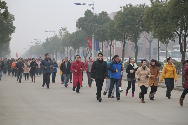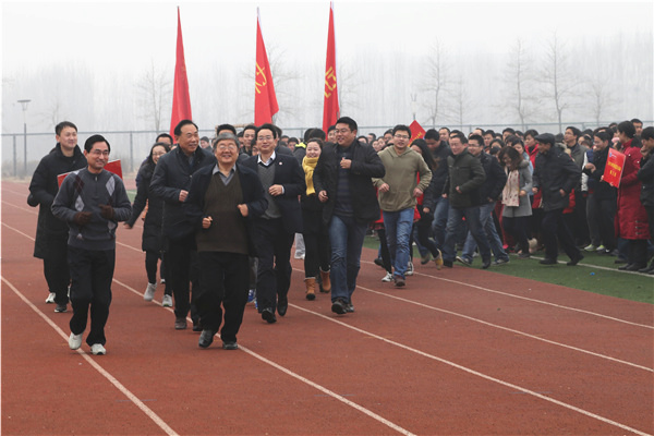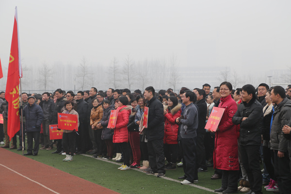 本网讯(记者 吴小婉)为提高教职工身体素质,营造全民健身的良好氛围, 1月13日上午,beat365网登教职工阳光体育环校园长跑活动在祥云体育场举行,校领导胡昭林、杨世国、马凤余、袁种宝出席了活动,共有14支代表队1000多名教师参加了本次活动。