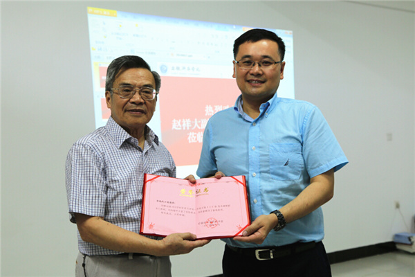 集团公司副总裁、校执行董事王孝武为方铭教授颁发荣誉证书
