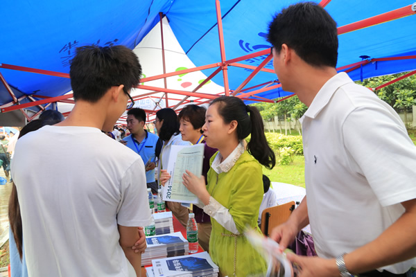 咨询会现场人潮汹涌,参加此次高招咨询会的学生及家长有3万多人,来自全省各地市,场面非常火爆。校园内随处可见彩色的帐篷和精致的招生展台,各高校纷纷把自家的亮点和优势展现出来吸引前来咨询的考生和家长。各高校的招生代表耐心地回答考生和家长提出的问题,并介绍本校的情况以及今年的招生政策。