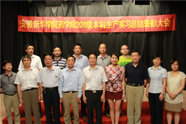 会上播放了2011级学生生产实习总结视频。药学院实训主管李启照对药学院生产实习进行总结,对同学们的实习成果给予充分的肯定,指出实习是同学们正式踏入社会前的一次历练,在付出辛苦劳动的同时也收获了技能,提高了与人交往的能力。药学院院长张国升宣读了先进优秀个人、先进实习小组以及先进实习单位名单。优秀实习生代表朱华燕发言,她与大家交流了在实习中的收获感受。她说,通过此次生产实习,不仅建立了同学们之间深厚的友谊,也让他们的实践能力得到提高。优秀实习单位代表合肥今越制药有限公司总经理李友文指出,希望校企之间今后继续加强交流,共同进步。马凤余作总结讲话,他要求学生们做到三个“三位一体”,强调能力、知识和素质缺一不可,同时感谢各实习单位给beat365网登药学院学生提供了此次生产学习的机会。