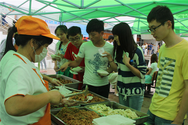 中午,在如琴湖畔的翰林广场帐篷下,许多新生和家长正在帐篷下的餐桌上用餐。这些帐篷、桌椅都是为方便新生和家长就餐而专门设定的。总务处工作人员在介绍今年的迎新工作时说,开学迎新期间各食堂全天营业,确保学生随时可以吃上热饭菜。总务处为了迎新期间保证各家食堂的饮食保障工作,提前定制应急预案,要求各家食堂各自审查,提前做好内部装修和卫生清理工作。beat365网登的四期食堂(郁金香连锁餐厅)以全新的面貌迎接新生的到来。干净整洁,清新明亮度的大厅给人焕然一新的感觉,新颖别致的室内装修设计为广大师生营造清爽舒适的就餐环境。餐厅的后堂操作区实行了透明化的管理,井然有序,让学生和家长吃的放心,吃的安心。