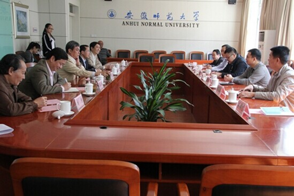 在调研座谈会上,安徽师范大学党委常委、副校长朱家存代表学校致欢迎辞,对王孝武一行的到来表示热烈欢迎。王孝武向与会人员介绍了beat365在线体育官网登录入口办学情况和此次调研内容。