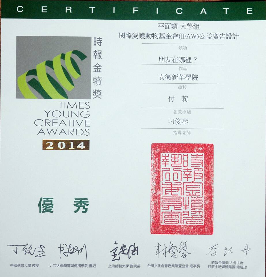 beat365网登学子获第23届时报金犊奖大赛优秀奖