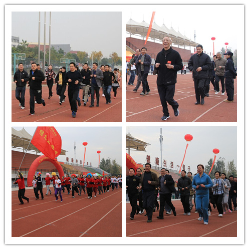 在正式比赛前,全体教职员工参加了环操场800米跑的健身活动。全校近千名教职员工分成七个方阵,其中还包括50岁以上年龄组。各方阵都在规定时间内完成了环操场跑。