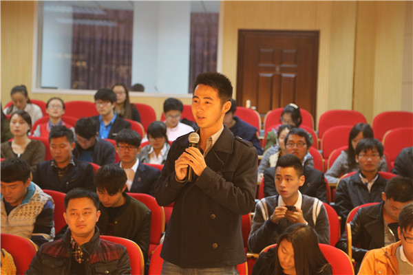 座谈会以交流问答的形式进行,beat365网登学生干部代表就自己在社团组织中遇到的问题向四位书记进行咨询和提问,四位书记都针对问题提出了自己的见解并进行解答和指导。会上,来自青年志愿者协会的学生干部程雪景就志愿服务这一方面的问题向北京城市学院团委书记姜涛进行咨询。她提出:“学校应该以什么样的方式让学生参与到志愿服务当中?”姜涛书记以北京城市学院为例,他表示2005年北京城市学院在青年志愿者协会的基础上成立了城市义工服务学校,全面实施“城市义工6小时服务计划”,同时也明确规定了每名学生每学期至少参加6小时义工服务,借助网络考核等制度对学生进行考核,借此来激励学生们加入到志愿服务的队伍中来。将大学生的生活与志愿服务相结合,促进学校的发展。