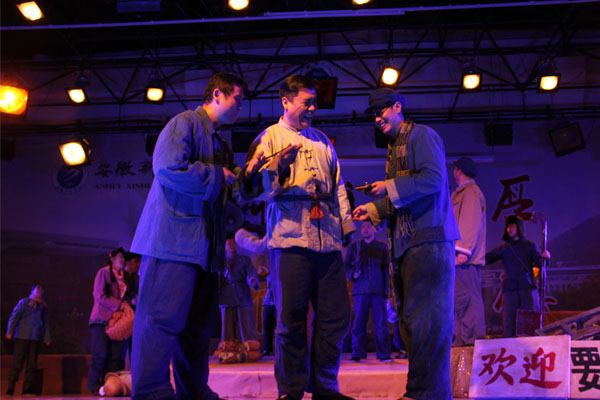 名为《万世根本》的话剧,讲述了在20世纪70年代末,凤阳小岗村里村民们实事求是改变生产方式,冲破层层阻力开创家庭联产承包责任制的故事。话剧艺术家们用精湛的演技,用心的道具,扣人心弦的鼓声,充满感染力的舞蹈,塑造了凤奶奶、关二爷、龙三叔等一个个饱满的人物形象。当18条汉子义无反顾地摁下18枚鲜红的手印,当田专员满怀深情地呼唤“我们党是和老百姓想在一起的,我们党决不会辜负人民的信任和期望”、“让老百姓过好日子是万世根本,拿老百姓当天是万世根本”时,现场的气氛达到了高潮。话剧《万世根本》为小岗村的这段历史增添了更细腻的情感,赢得了场内阵阵掌声,一些观众甚至流下感动的泪水。