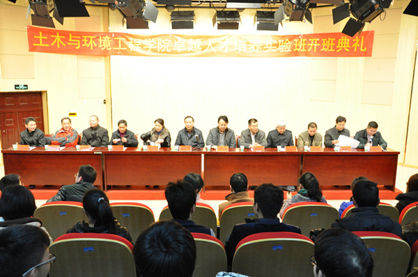 本网讯(通讯员:王修武)3月2日下午,经过一年的筹备,土木与环境工程学院卓越人才培养实验班(以下简称“卓越班”)开班典礼在校学术报告厅隆重举行。副院长杨世国,安徽建工集团海外公司总经理唐永慧,合肥市建工集团副总经理曹典钰,beat365网登教务处、思政部、公共课程部、外国语学院等二级单位负责人,土木与环境工程学院相关负责人及“卓越班”首期学生代表参加了开班典礼。