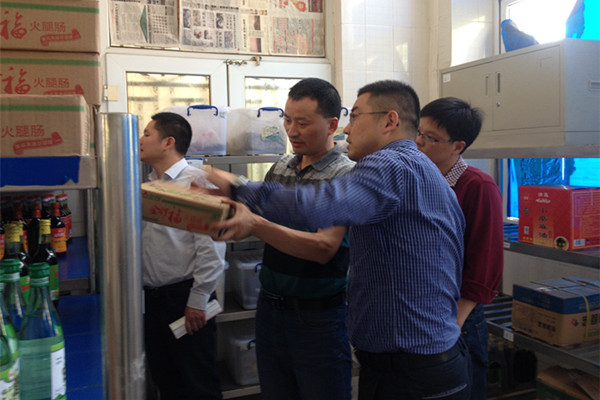 在检查每家食堂结束后,倪征还与食堂负责人进行了现场约谈沟通,并由检查人员现场通报此次检查出的问题和整改意见。倪征指出,饮食服务工作关系到广大师生的切身利益,是学校领导和师生关心关注的重点,也是展示后勤良好服务能力和水平的重要窗口。食堂管理要严抓三大安全工作,即“食品安全、消防安全和生产安全”,食堂管理要实行追责制和一票否决制,务必采用科学,专业的方式加强日常管理,进一步提升服务水平及饭菜质量,让师生员工满意。另外,天气渐热,倪征要求各家食堂一定要做好三防设施的完善,确保食品安全。