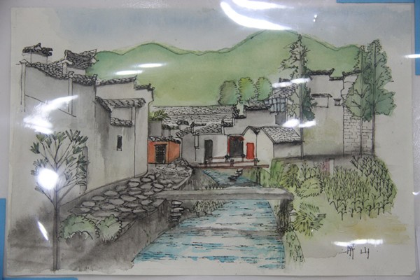 据悉,本次展览历时一周,展览作品多选自2014级建筑学、风景园林、工业设计、建筑设计专业学生在呈坎、屏山、唐模、婺源等地的写生及测绘作业,共百余幅钢笔画、水彩画作品。其中展出的徽州古名居、棠樾敦本堂祠堂、宏村沙盘三个大型徽派建筑模型,制作期间,指导老师曾带领2014级建筑学、风景园林专业的15名学生代表前往安徽省博物馆进行徽州建筑模型调研,利用两周时间将皖南建筑测绘图纸数据等比例缩小制作而成。学生利用木结构、徽州三雕和光影效果的结合,给参观者带来了一道道不同寻常的视觉盛宴,每一处都体现了学生们的精心思考。