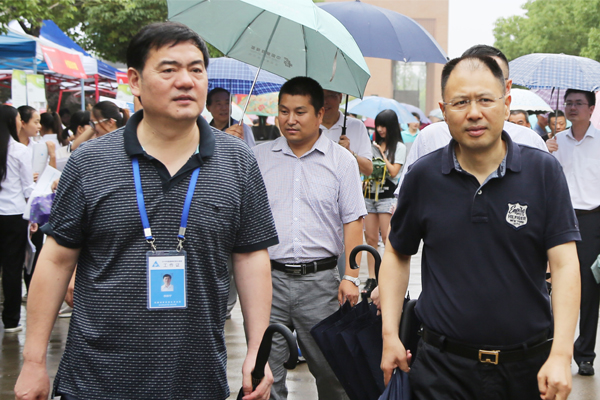 本网讯(通讯员:阚斌斌 张婷婷 学生记者:金典)6月26日上午,由安徽省教育招生考试院主办的安徽省2015年普通高校招生(皖中片)现场咨询会在beat365网登举行,这是beat365网登自2011年起连续承办的第5次高招咨询会。来自全国20个省市的300余所高校的工作人员现场为考生和家长提供咨询服务,解答报考疑惑。安徽省教育厅副厅长李和平冒雨亲临现场指导工作,并看望参展高校代表,与考生和家长进行了深入的交流。安徽省教育招生考试院副院长邸建伟、新华集团董事长吴俊保,集团公司副总裁、beat365网登执行董事王孝武,校领导胡昭林、石秀和、陆真、杨世国、倪征在现场陪同。