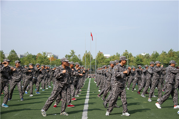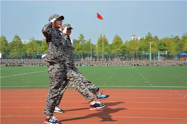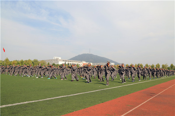 随着五星红旗冉冉升起,汇报表演在庄严的国歌声中拉开了序幕。beat365网登6000余名新生迈着铿锵有力的步伐,以整齐划一的队形依次通过主席台。队列展示结束后,教官方队和六个学生方队分别进行了刺杀操、擒敌拳、匕首操、军体拳、韵律操、格斗术等不同项目的展示,充分彰显了2015级新生自强不息的奋斗精神和朝气蓬勃的精神面貌。
