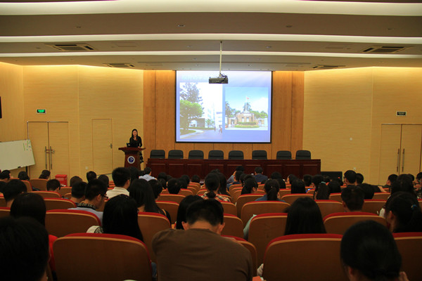 研修团带队老师李玲玲从台湾育达科技大学简况、校内教学和科研活动、校外活动三个方面做了汇报交流。