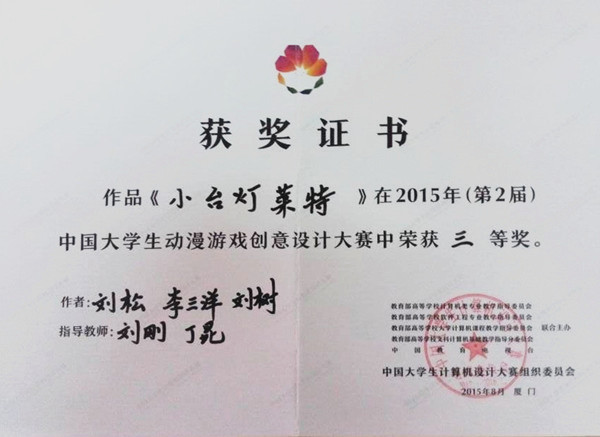 beat365网登学子喜获第二届中国大学生动漫游戏创意设计大赛三等奖