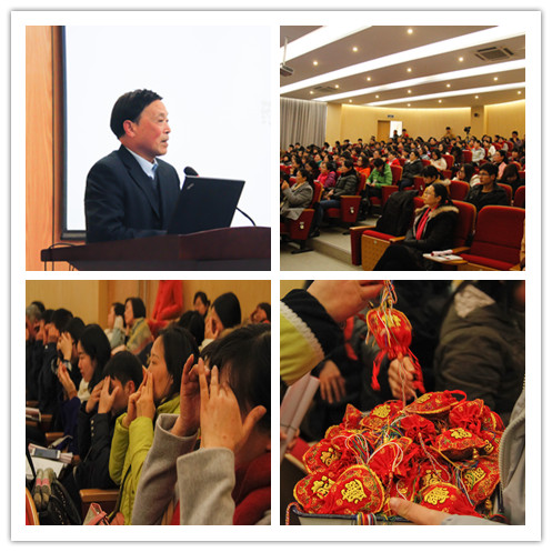 本网讯(通讯员:汪明天)为丰富教职员工的精神文化生活,增强健康保健意识,学会自我保健和健康养生的基本方法,2015年12月30日下午,校工会于学术报告厅成功举办养生保健讲座,讲座由药学院分工会承办。校长助理、工会主席王丽和150余名教职工一起参加了此次活动。