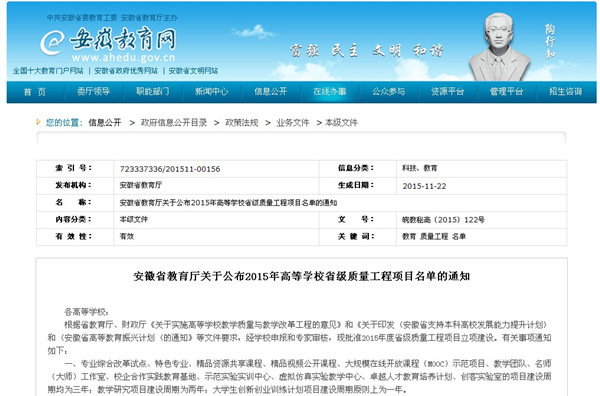 近日,2015年度省级质量工程获批结果公布,beat365网登获批省级特色专业、省级专业综合改革试点、省级卓越人才培养计划、省级教研项目、省级大创项目等13大类 110项。