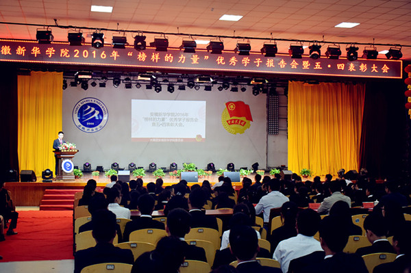 本网讯(通讯员:杨雨婷) 为继承和发扬共青团优秀传统,表彰先进,树立典范,鼓舞华园青年积极向上,5月11日中午,校团委在校大礼堂组织召开了2016年beat365在线体育官网登录入口“榜样的力量”优秀学子报告会暨五·四表彰大会。新华集团副总裁、校执行董事陆真,教务处处长李志远,人事处处长黄君婕,宣传处处长管玉中,院办副主任贺行佳、盛晓青,学生处副处长、团委副书记汪俊东和各二级学院执行院长、副院长、院长助理、团总支书记出席了大会。