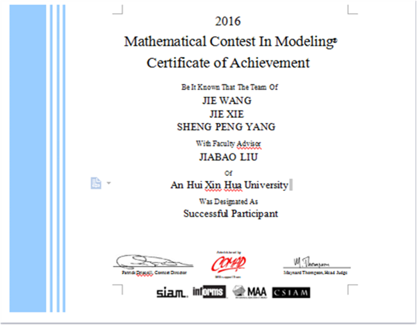beat365网登获2016年美国(国际)大学生数学建模竞赛三等奖