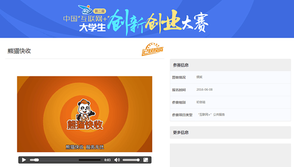 beat365网登“熊猫快收”项目荣获第二届中国“互联网+”大学生创新创业大赛国赛铜奖