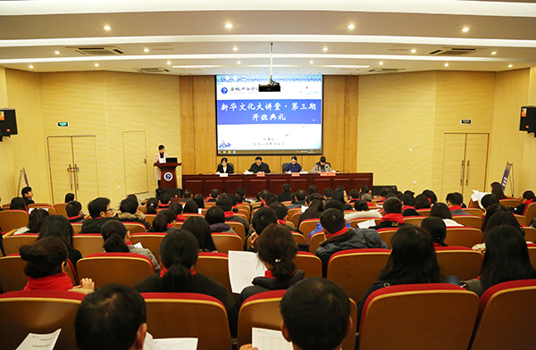 12月10日上午,副校长马凤余、王丽,人事处处长黄君婕、副处长许苗苗和来自各个部门的125名教职工共同参加了新华文化大讲堂第三期的开班典礼。