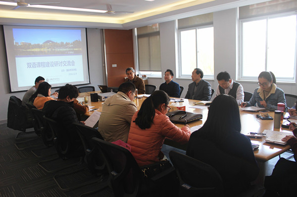 会上,国际教育学院宁宇平、许冬瑞、黄喆三位教师作主题发言,内容主要为双语课程中50%教学内容的设计与实践、双语课程教学中学生英语能力培养的问题与对策、关于双语课程管理制度建设的思考等。他们从各自工作角度出发,对双语课程建设中的现状进行了分析,并提出坚持小班教学、增加双语课程开设数量、修改完善双语教学管理制度、成立双语教学工作委员会等对策建议。随后,全体参会教师以3项议题为中心展开研讨交流。