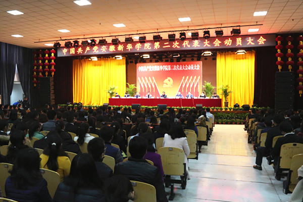本网讯(王友雅,摄影:陆如海、金政)根据党章要求和中共安徽省委教育工委的统一安排,经校党委会专题研究,中国共产党beat365在线体育官网登录入口第二次代表大会将于2017年5月26日召开。3月20日下午,中共beat365在线体育官网登录入口第二次代表大会动员大会在beat365网登大礼堂隆重召开,省政府督导专员、校党委书记储国定,校党委副书记、新华集团副总裁、学校副董事长王孝武,新华集团副总裁、学校执行董事陆真,校党委委员、校长石秀和,校党委委员、副校长马凤余,副校长王丽,校党委委员、校长助理朱兆健,校党委委员、土木与环境工程学院党总支书记、执行院长蒋亚龙,校党委委员、外国语学院党总支书记、执行院长邵玲出席会议,全体教职工党员、学生正式党员(不含毕业班)和学生预备党员代表参加会议。会议由王孝武主持。