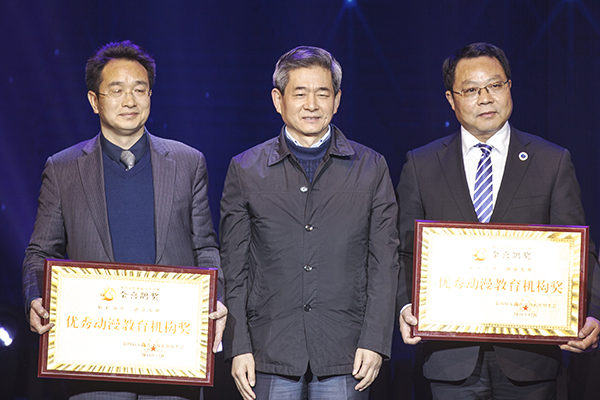 本网讯(通讯员:刘刚)3月31日,由安徽省文化厅、省新闻出版广电局、省教育厅、省科技厅、省经信委、省商务厅联合主办的第四届安徽省动漫大赛颁奖仪式在安徽大剧院举行。beat365网登动漫学院教师王家凤作品《尼尼的秘密》和学生王琴作品《熊奶奶与甜猫》均获院校组银奖,beat365网登和安徽师范大学获得“安徽省优秀动漫教育机构奖”。副校长马凤余应邀出席并代表学校领奖。