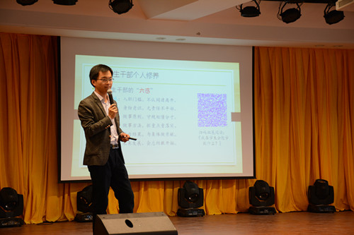 开班典礼结束后,外国语学院副院长周景给学员们讲授了能力发展的第一课。他从学生干部个人修养塑造、学生干部能力培养及语言艺术与沟通技巧这三点,进行了学生干部个人能力与沟通意识培养的教学。