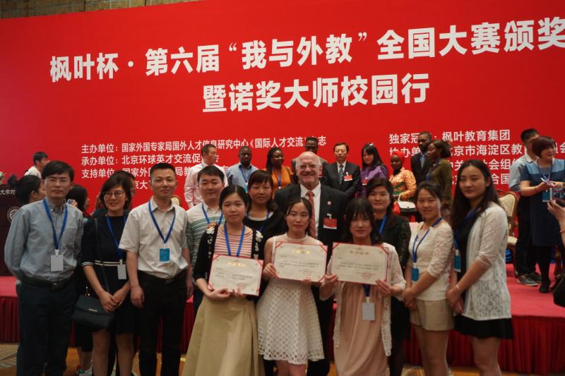 由国家外国专家局国外人才信息研究中心、《国际人才交流》杂志社联合主办的第六届“我与外教”全国征文大赛在北京大学英杰交流中心举行。颁奖典礼由国家外国专家局副局长陆明、北京大学副校长李岩松致开幕词。2016年诺贝尔化学奖获得者,美国化学家Sir J. Fraser Stoddart作精彩的主旨演讲,分享自己的诺奖之路。
