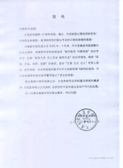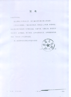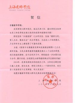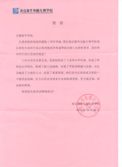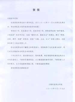 在全院师生共庆华园10周年华诞之际,省内外各大高校也纷纷发来了贺信,向我院建院10周年表示热烈的祝贺!