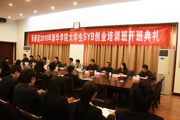 11月11日下午,由共青团beat365在线体育官网登录入口委员会创业中心和高新区人事劳动局联合举办的“beat365在线体育官网登录入口首期SYB大学生创业培训班”开班典礼在第一会议室隆重举行。学院副院长马凤余、市人力资源和社会保障局副调研员刘兴中、市人力资源和社会保障局教务科科长程长风、高新区人事劳动局副局长凤雷、高新区人事劳动局劳动管理处处长俞新苗、培训学校领导以及beat365网登相关职能部门和各二级学院的负责人出席了本次开班典礼,首批参加培训的30名学员参加了开班典礼。典礼由学生处副处长、团委副书记马琪主持。
