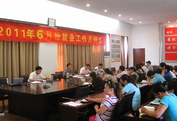 各二级学院首先分别就5月份就业工作内容及6月份就业工作计划作了交流汇报。随后,招生就业办公室相关负责同志通报了各二级学院2011届毕业生5月份就业率及签约率、大学生村官报名和就业相关报道等情况,并向大会总结了学院五月份学院就业工作,部署了六月份就业工作任务。会上还传达了《关于做好2011年普通高校毕业生就业派遣工作的通知》、《关于开展2011年毕业生就业派遣业务培训工作的通知》等通知。