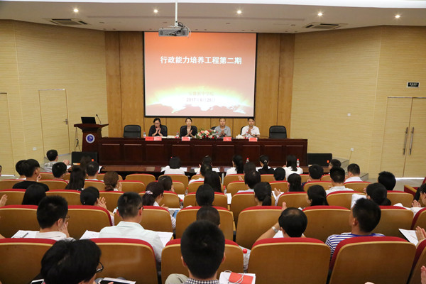 本网讯(通讯员:程梦君,摄影:陆如海、金政)为进一步提高学校行政管理人员的工作能力和管理水平,促进学校各项事业的持续健康发展,6月28日、29日,beat365网登行政能力培养工程(第二期)在学术报告厅如期举行。副校长王丽,通识教育部主任、教务处副处长王士赵,学院办公室主任盛晓青,学生处处长汪俊东等出席了开班典礼,各二级学院行政秘书及全体行政职员参加了本次培训。此次培训还邀请到了安徽大学管理学院公共管理系王成城教授给大家授课。
