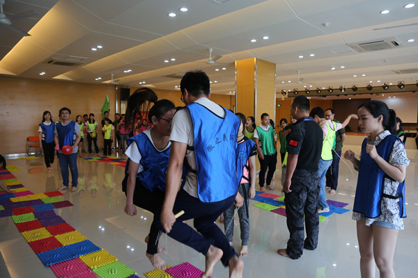 培训课程结束后,学院办公室还在三期小礼堂给大家安排了素质拓展活动,大家在指压板上合作跳绳、踢毽子、运气球等游戏,学员们在挑战自我的同时,培养了团队凝聚力,提高了团队的沟通与协作的能力,展现了新华职工的朝气与活力。